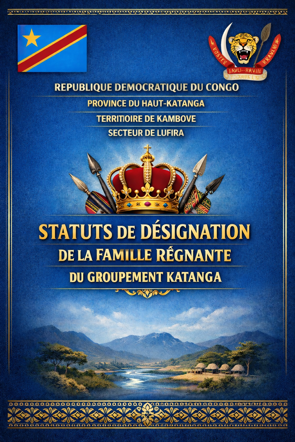 Réaffirmant les fondements de notre système politique traditionnel, régi par un régime mixte à dominante... Voir plusStatuts de désignation de la famille régnante du groupement katanga