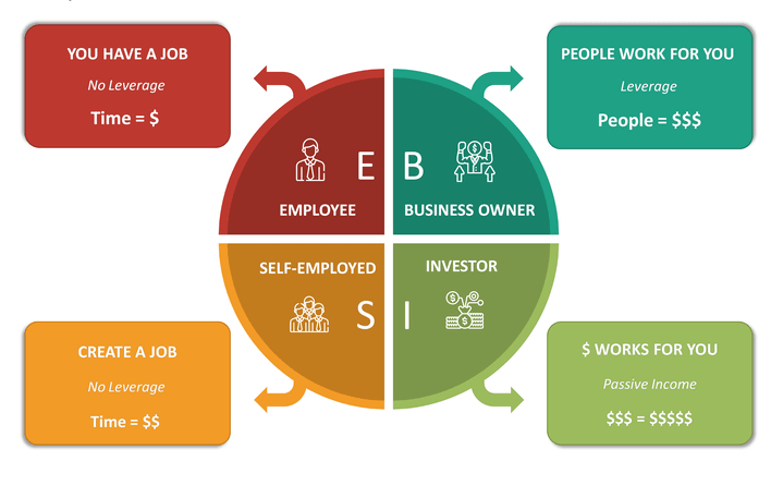 Plus tard développé dans Cashflow Quadrant, le modèle distingue :