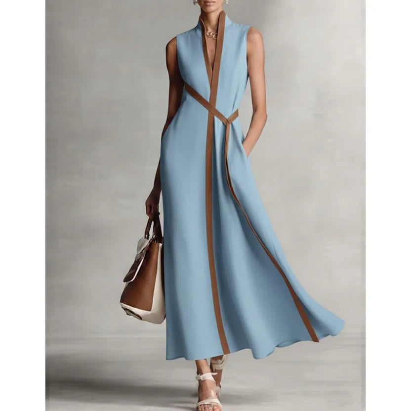 Retro Striped Splicing Cotton Linen Sleeveless Women's Dress Temperame