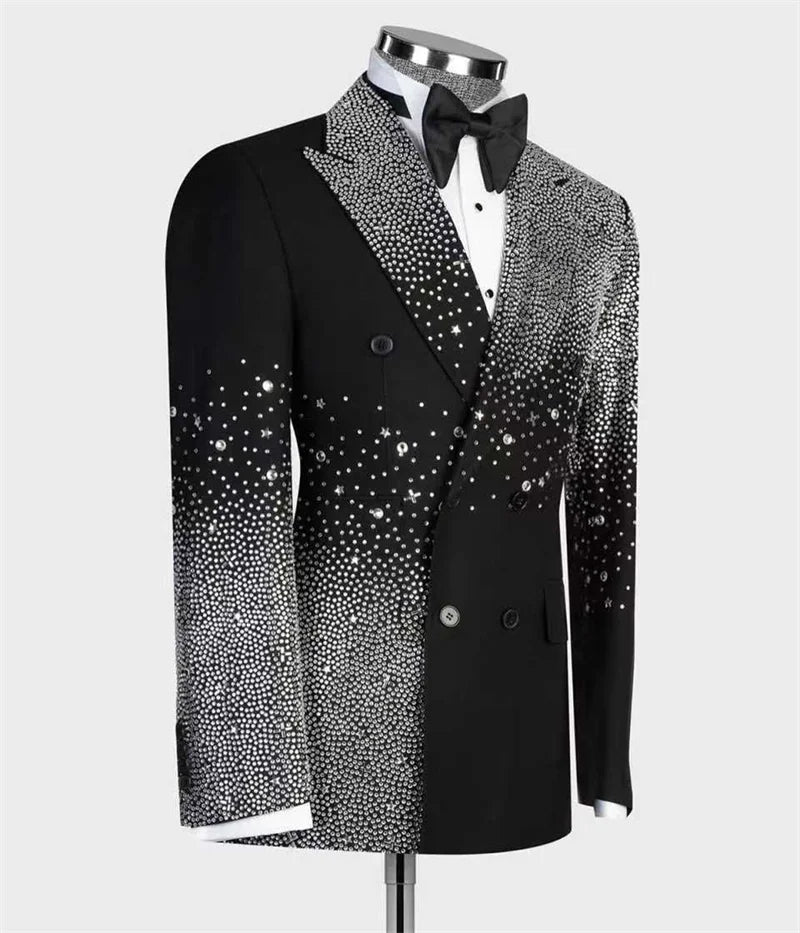 Ensemble de costumes de luxe pour hommes, 2 pièces, blazer + pantalon noir, smoking de mariage brillant