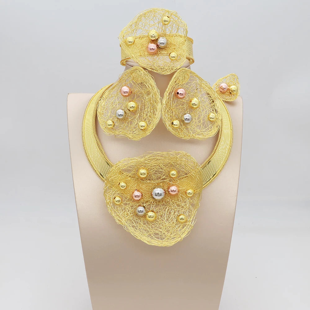 Bijoux en plaqué or italiens pour femmes, ensembles de bijoux faits à la main