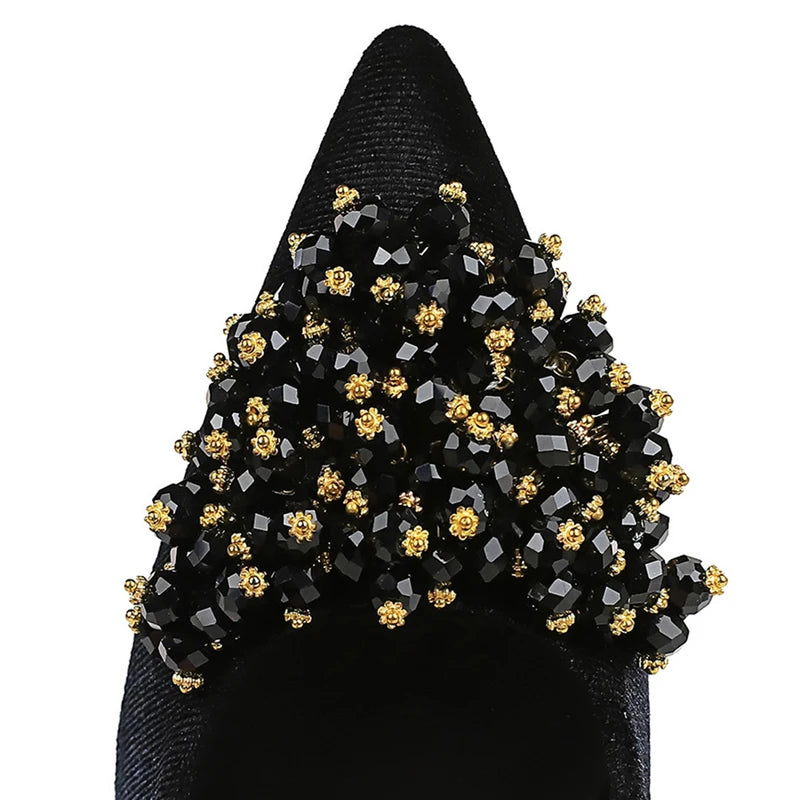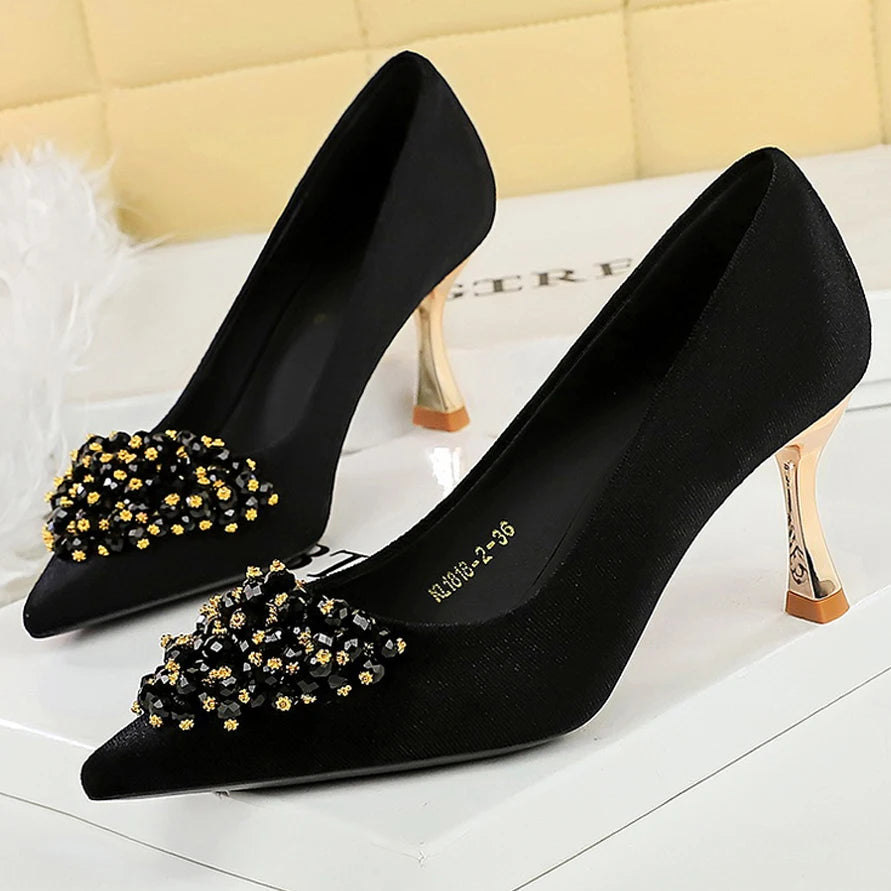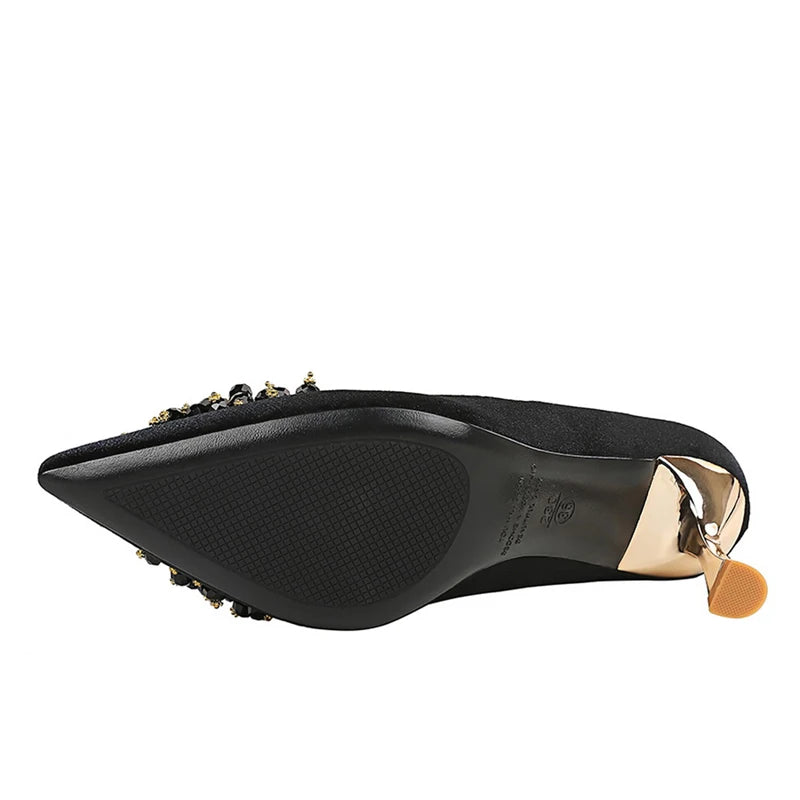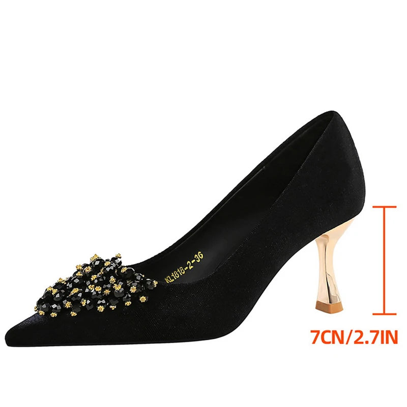 Escarpins de luxe en métal perlé pour femmes, chaussures de banquet, talons aiguilles de 7 cm, en daim