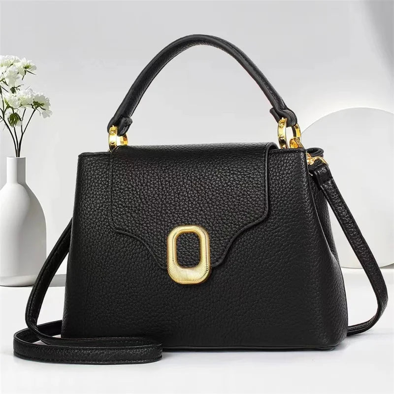 Sac à main pour femme avec boucle en cuir PU effet litchi