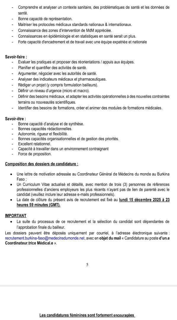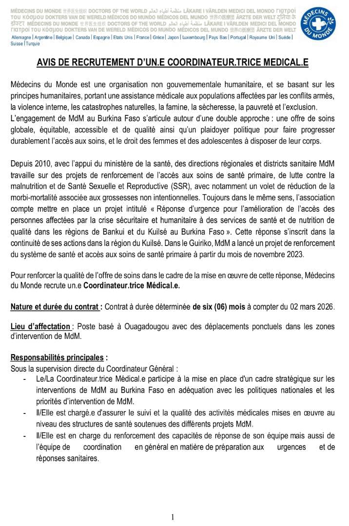 Recrutement d'un coordinateur médical pour Médecin du Monde