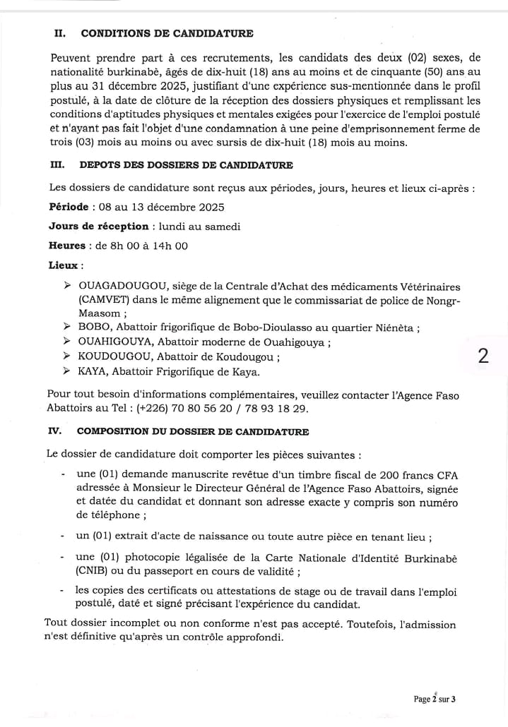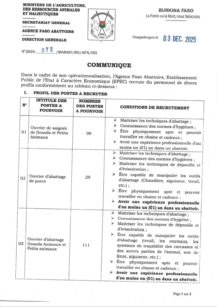 Recrutement multiples chez Faso Abattoir, une société de l'État Bur