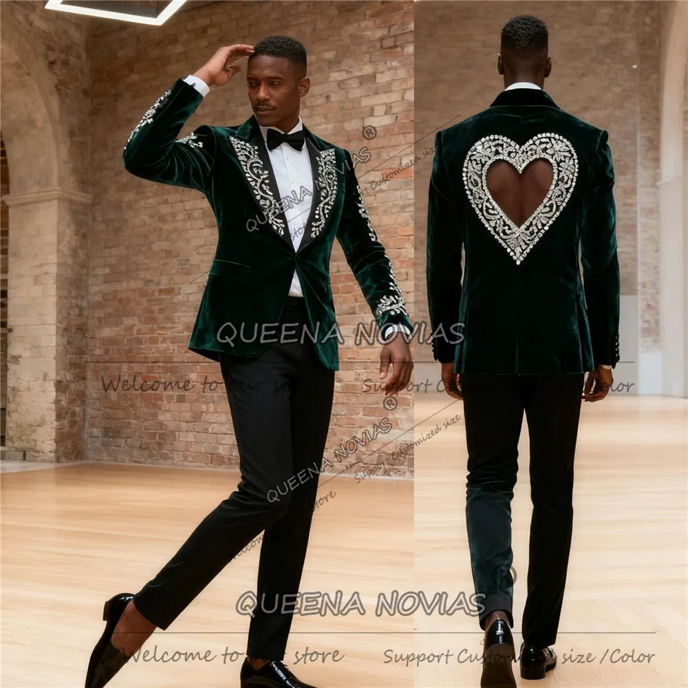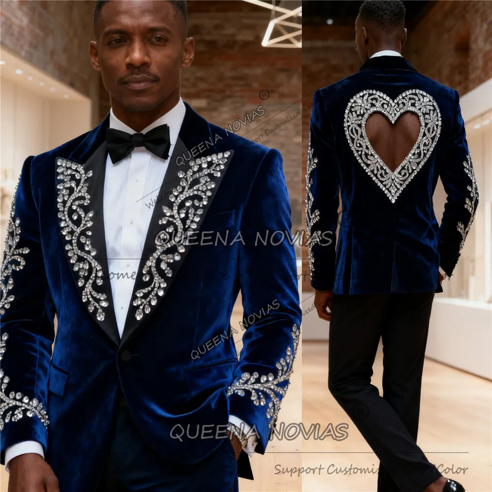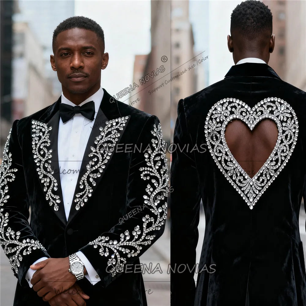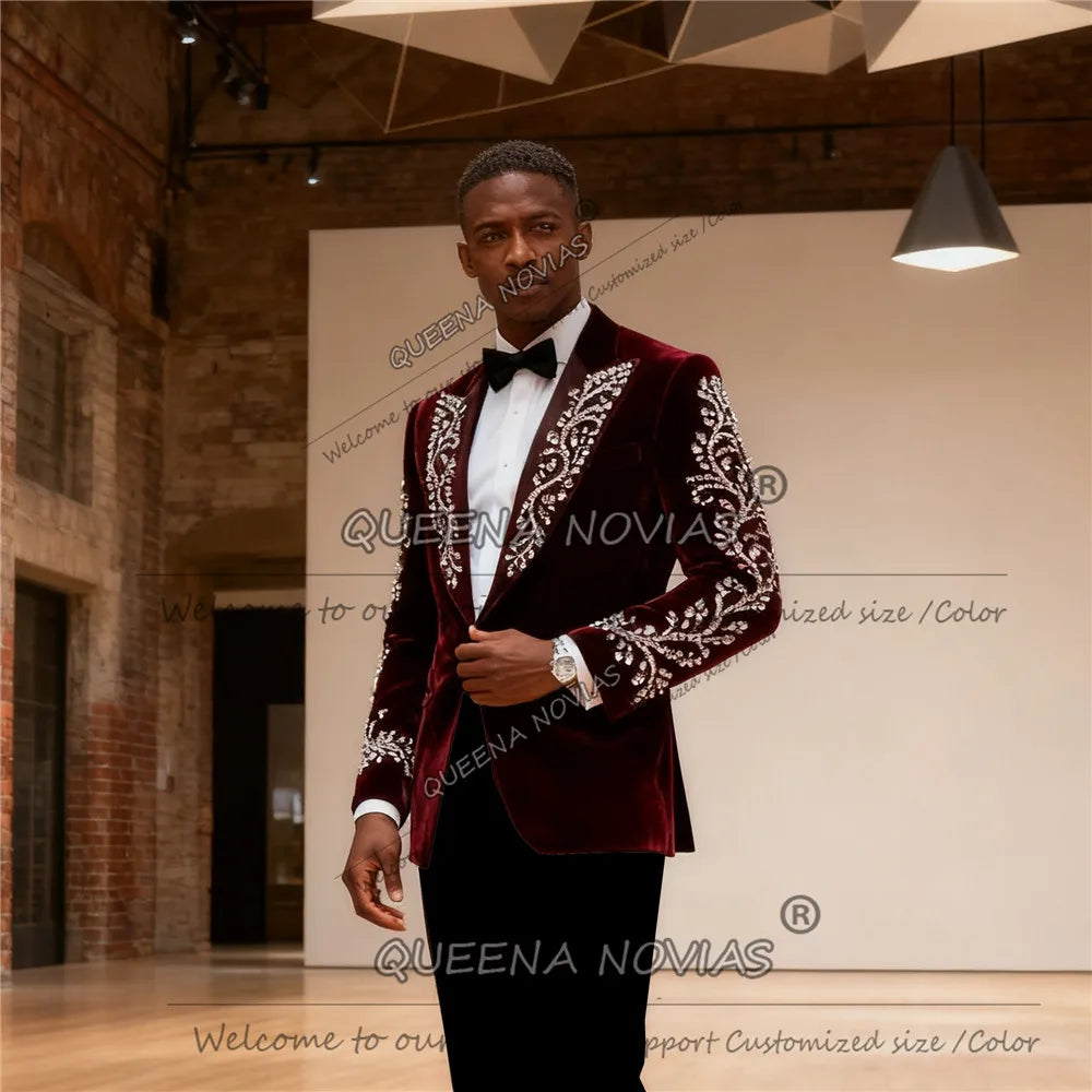 Costume de luxe orné de perles et de pierres pour homme, coupe ajustée, deux pièces