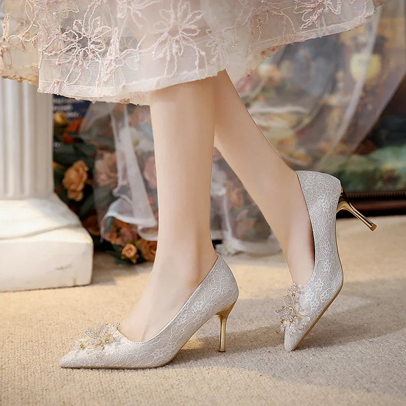 Chaussures à talons hauts à semelle souple, broderie de perles, styl