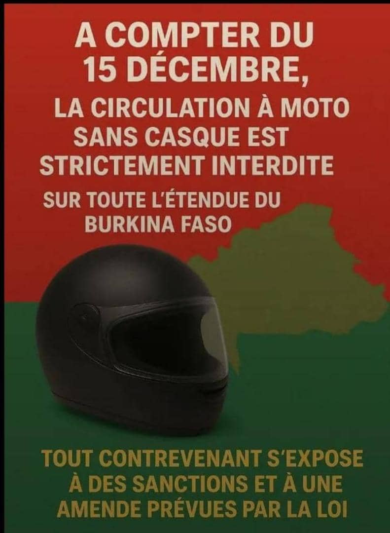Au Burkina Faso, le port de casque est obligatoire pour les motocyclistes.