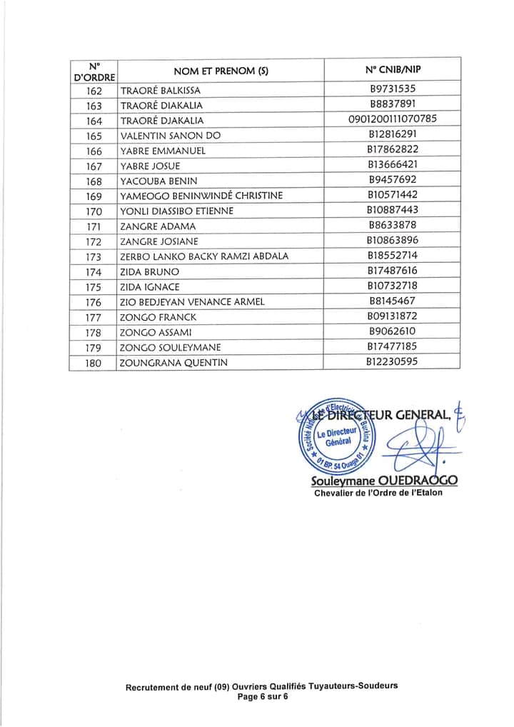 Le détails des épreuves peuvent être consulté à travers les convocations publiées sur le site web de la SONABEL accessible à l’adresse www.sonabel.bf