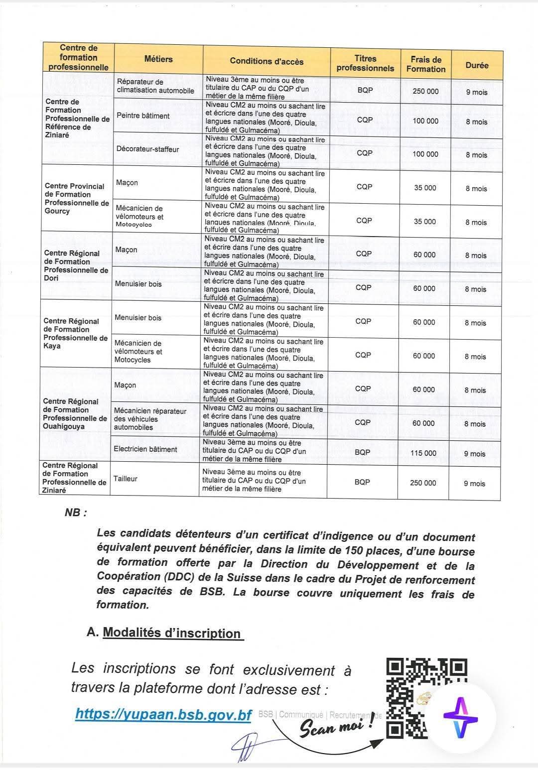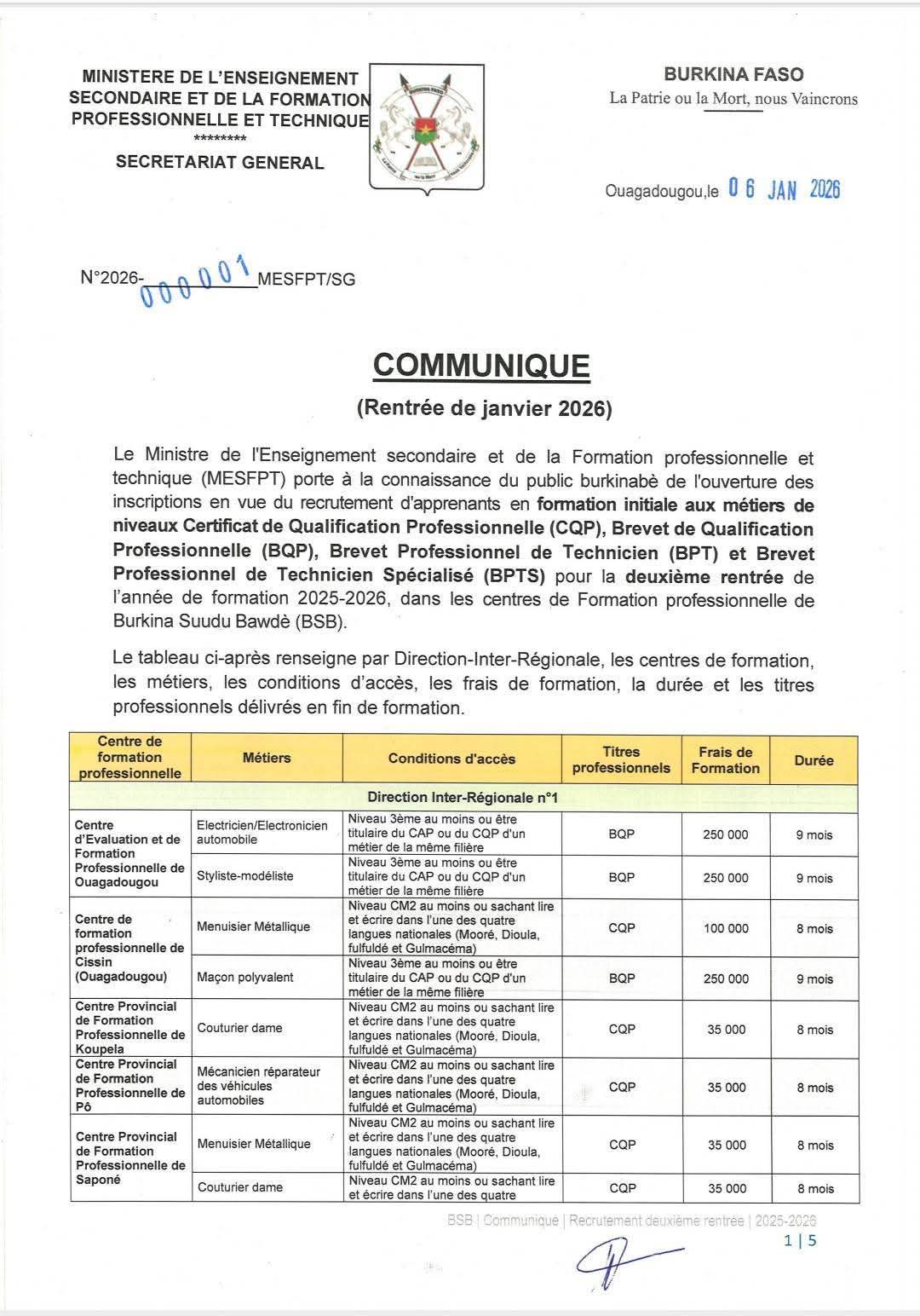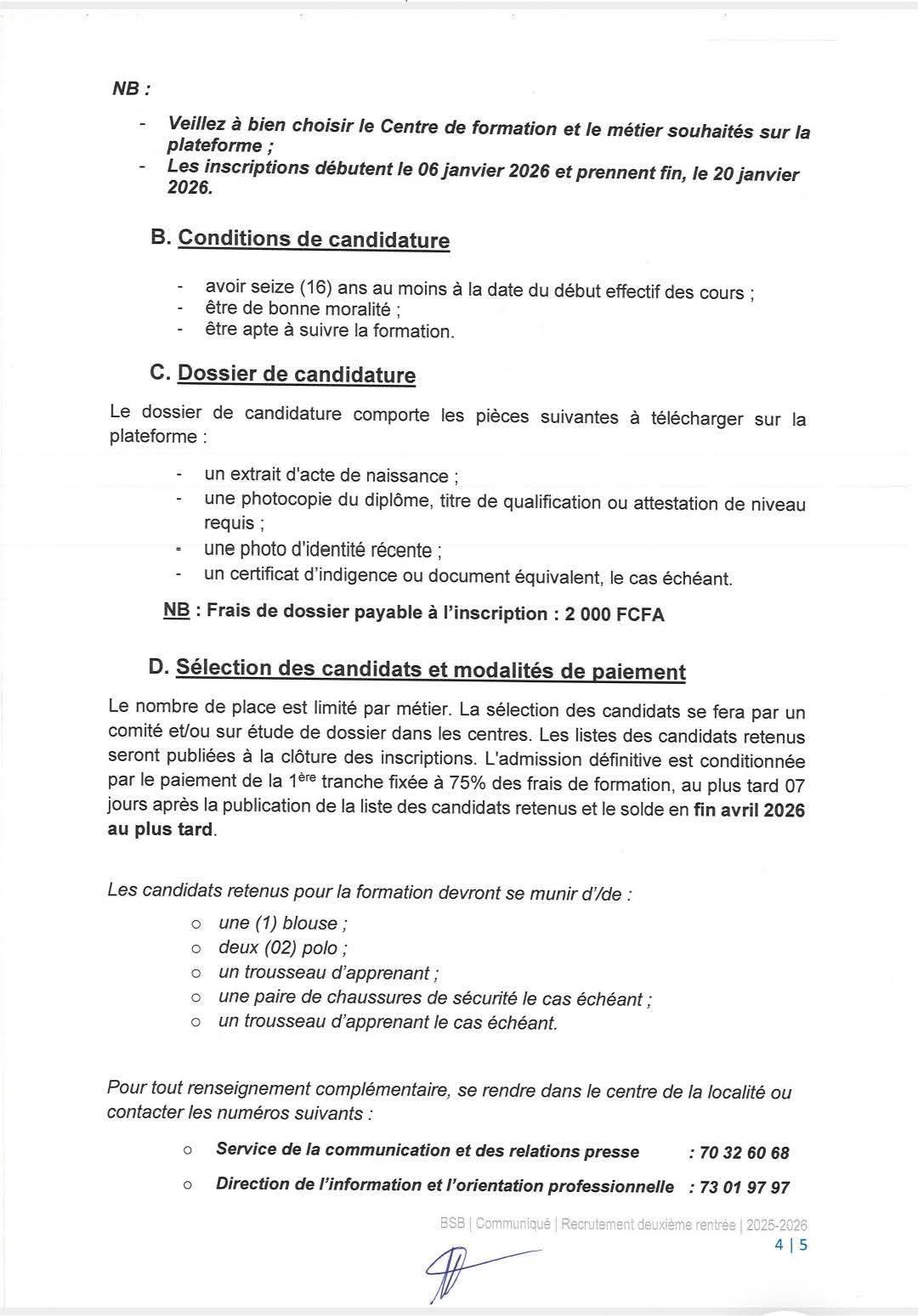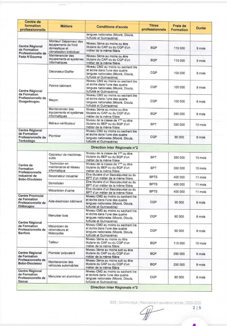 Recrutement des nouveaux apprenants pour la deuxième rentrée de l'année de formation 2025-2026 dans les centres de formation professionnelle de Burkina Suudu Bawdè BSB.
