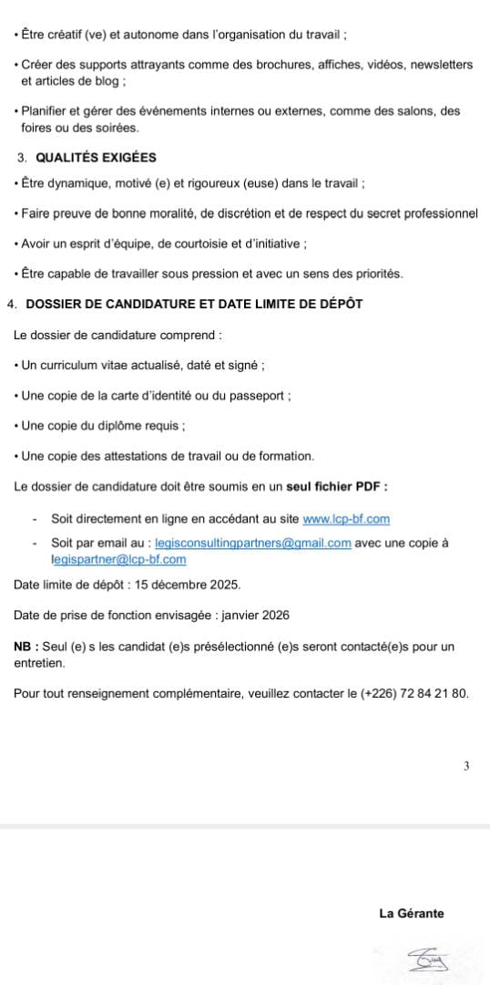 Recrutement d'un chargé de communication Pour Legis consulting partners sarl
